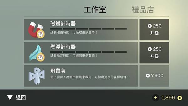 蒐集的金幣可以在工作室兌換不同的道具。(由於舊作重玩我實在忘記道具的功用了,也沒耐心存錢,給大家一個念想自己嘗試吧)