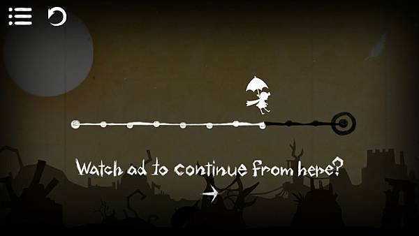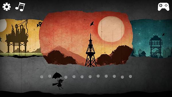 首頁可以選擇關卡,直接點關卡右上角的白色放映機則可以回味該關的破關小故事。下方小女孩會飄在該關對應的點點上,有點可愛。