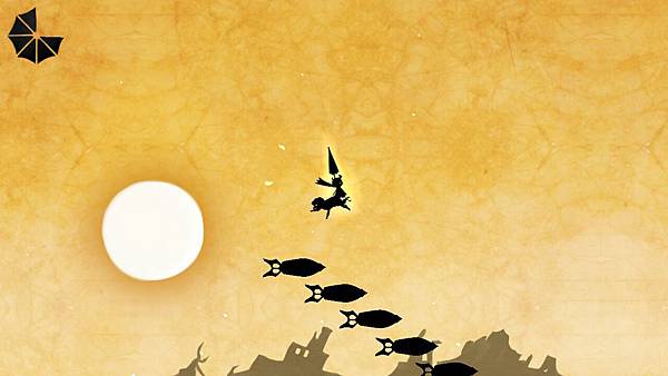 左上方的多邊形(應該是模擬由上向下看的傘面)會在撞到障礙物或向上飛的時候減少,所以盡量上上下下地飛,一直維持在高空可是會耗能量的。