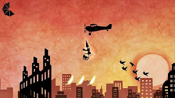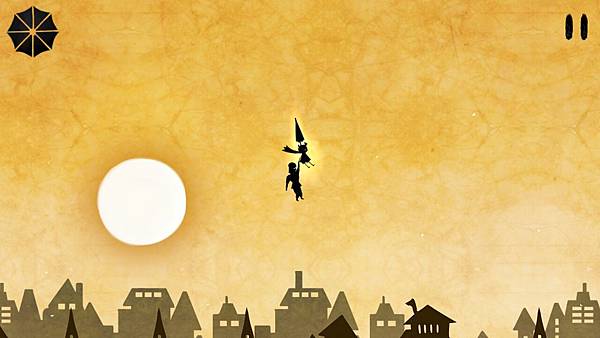 遊戲畫面簡潔俐落,在溫和的音樂聲中,小女孩撐著傘,在美如夕陽的背景和都市剪影中飛翔。
